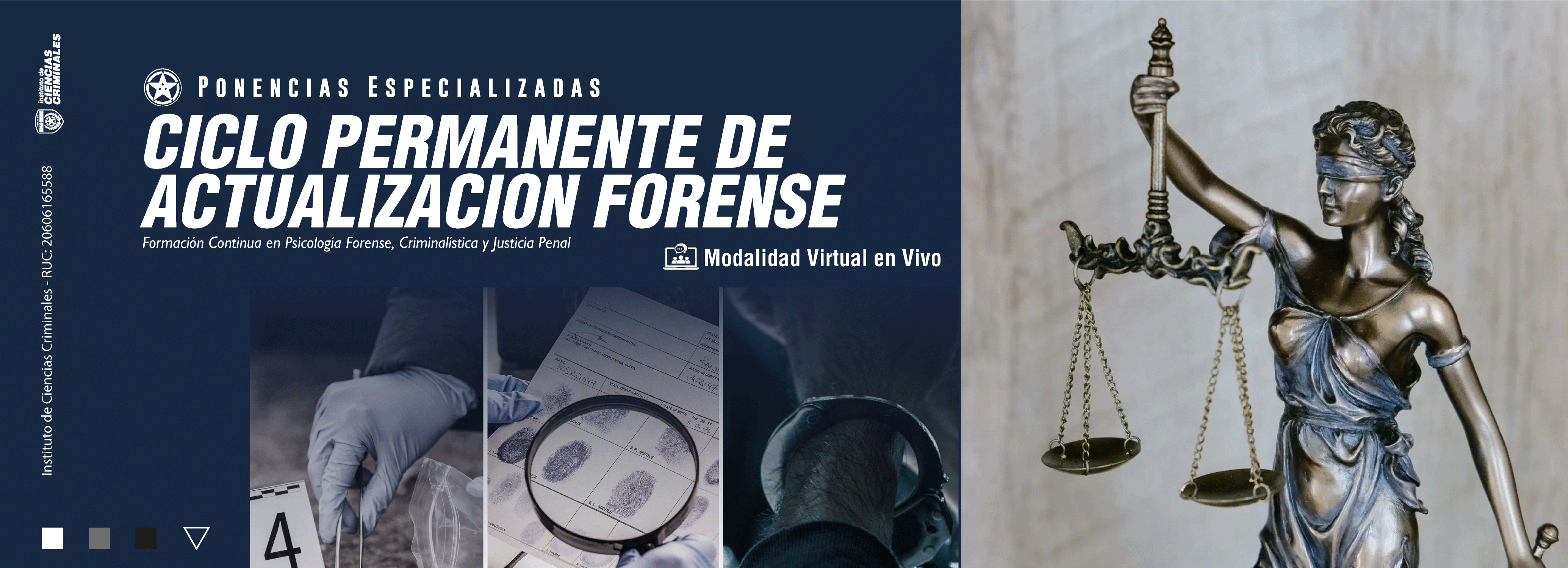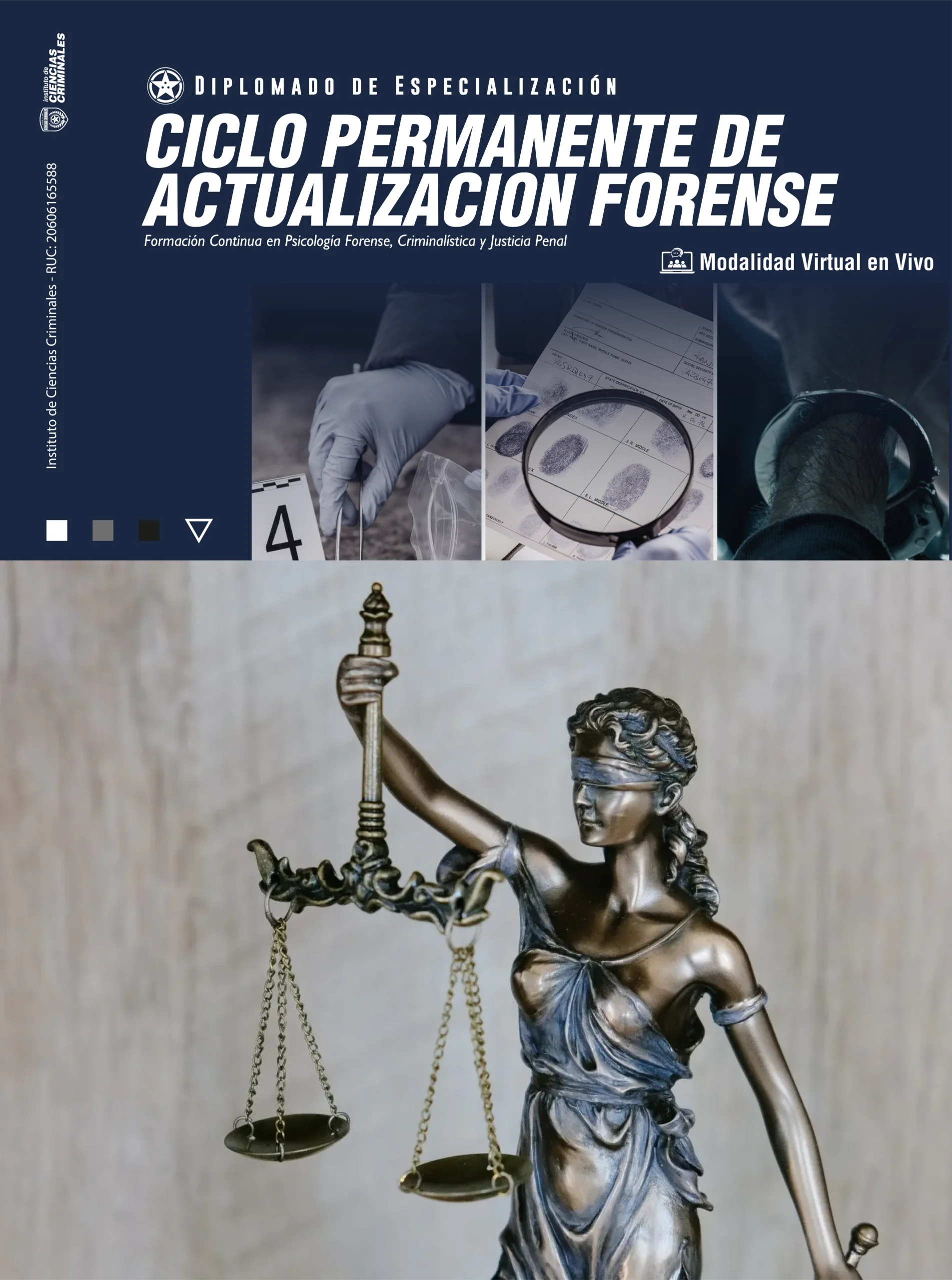 El Instituto de Ciencias Criminales es una entidad académica y de investigación dedicada a la formación, especialización y perfeccionamiento profesional en criminología, psicología forense, derecho penal, criminalística y ciencias del comportamiento aplicadas a la justicia. Su propósito es contribuir al fortalecimiento del sistema judicial y de seguridad mediante la generación de conocimiento científico, la formación de profesionales competentes y éticamente comprometidos, y la aplicación de metodologías actualizadas para la comprensión, prevención e intervención frente al fenómeno criminal. A través de diplomados, cursos, seminarios, asesorías e investigaciones, el Instituto promueve una educación basada en la evidencia, la interdisciplinariedad y la responsabilidad social, consolidándose como un referente en la formación de expertos comprometidos con la justicia, los derechos humanos y la construcción de una sociedad más segura y equitativa.