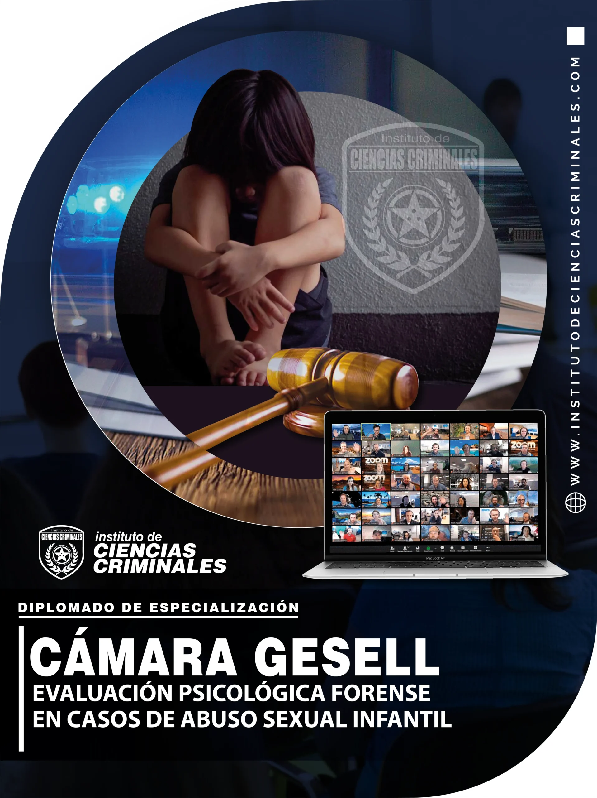 El Instituto de Ciencias Criminales (INCICRI) otorga el Diploma de Especialización en Cámara Gesell y Evaluación Psicológica Forense en Casos de Abuso Sexual Infantil, que acredita la formación avanzada del participante en el ámbito de la evaluación psicológica forense y la entrevista investigativa. Este diploma respalda la competencia técnica, metodológica y ética del egresado para intervenir profesionalmente en contextos judiciales, conforme a los estándares nacionales e internacionales de la práctica forense.